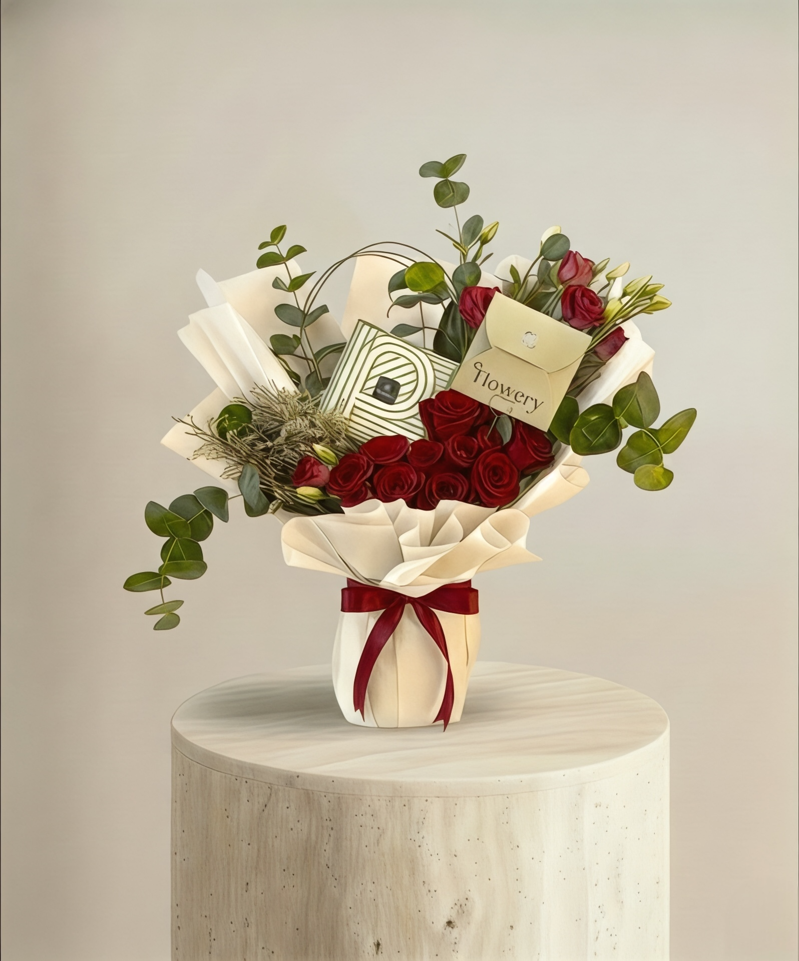 بوكية ورد مع شوكلاتة باتشي هي مزيج استثنائي من جمال الورد الاحمر ولمسة من الفخامة مع شوكولاتة باتشي.
