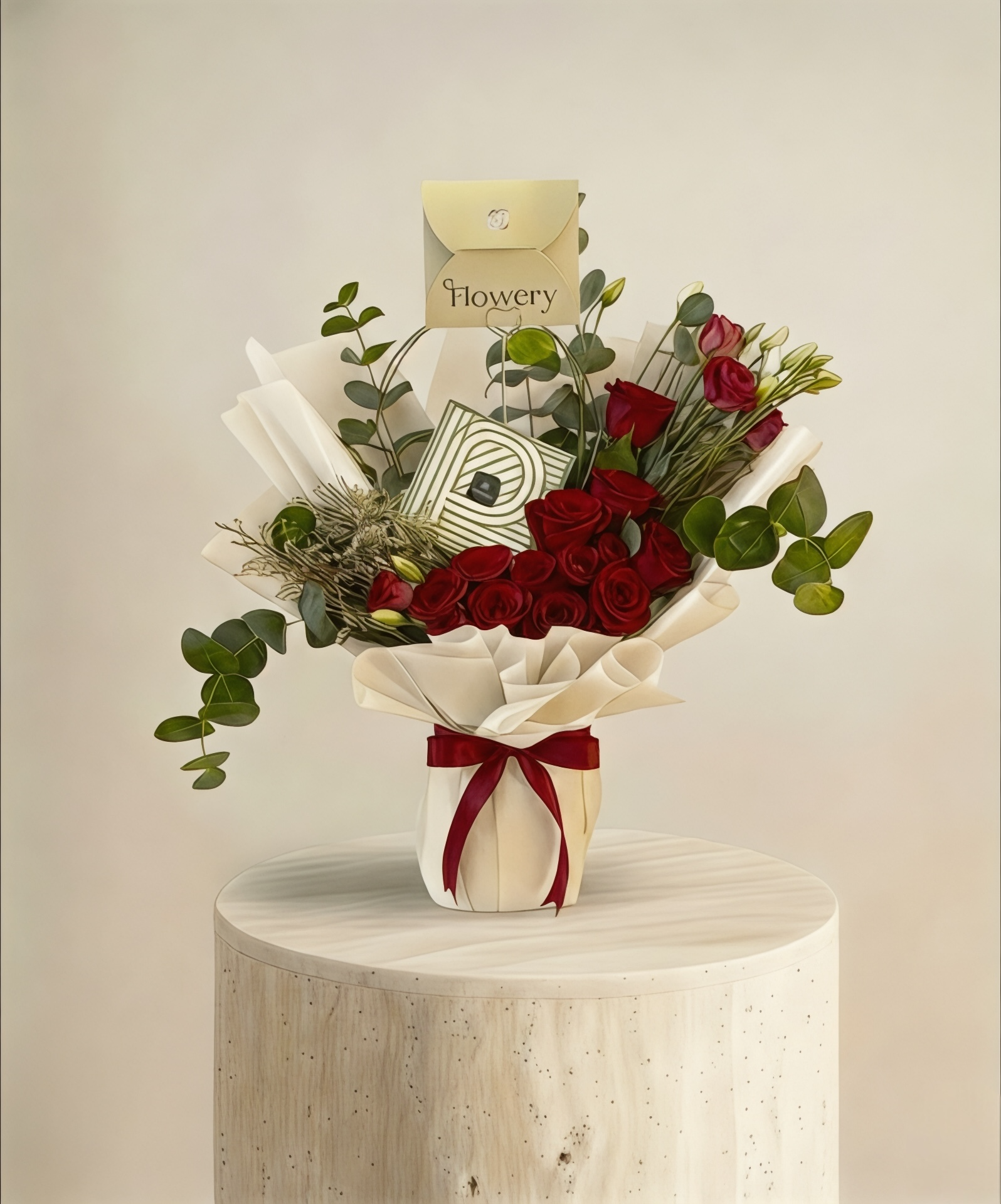تغليف بيج فاتح مع شريطة حمراء
