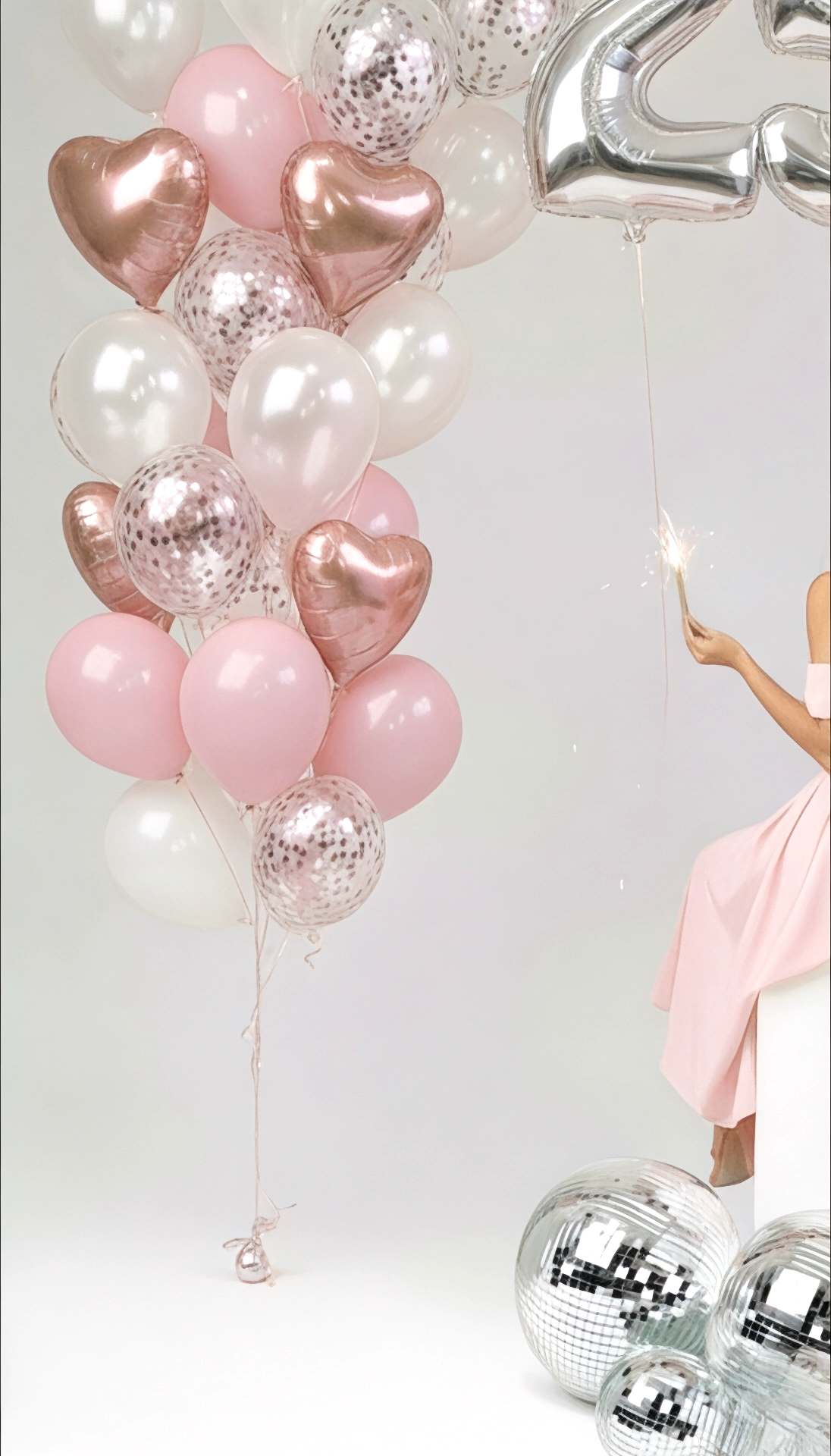 • 12 بالون هيليوم باللون الوردي (بينك).